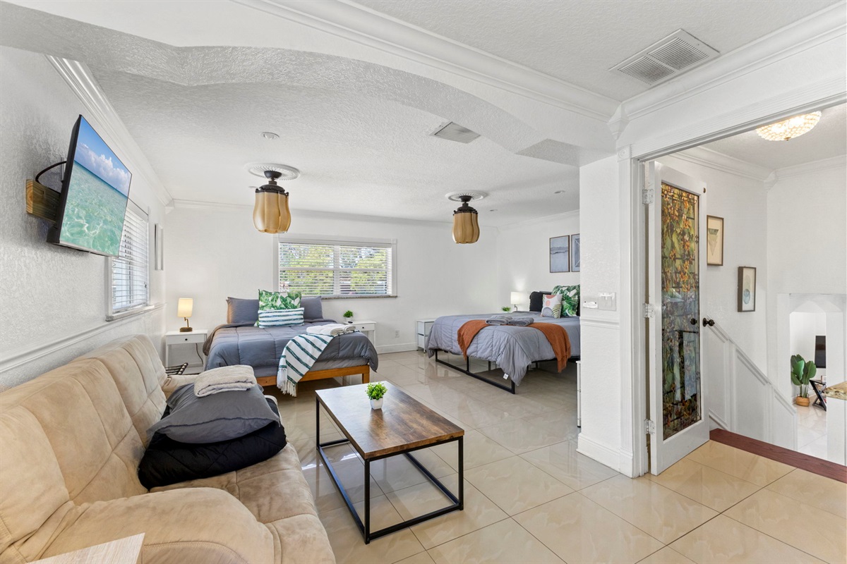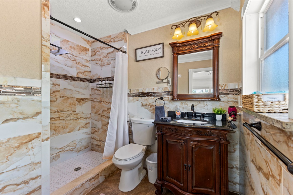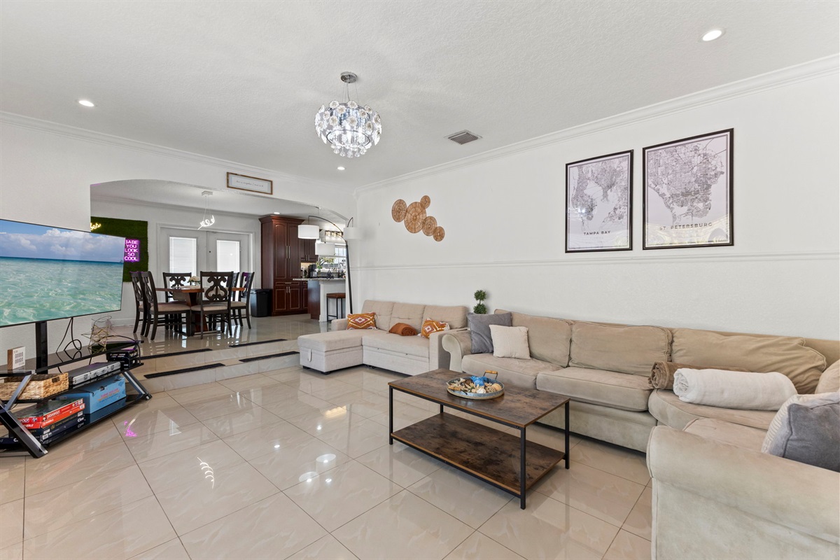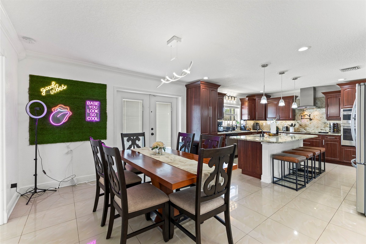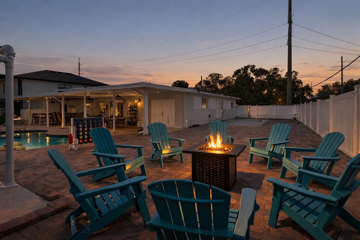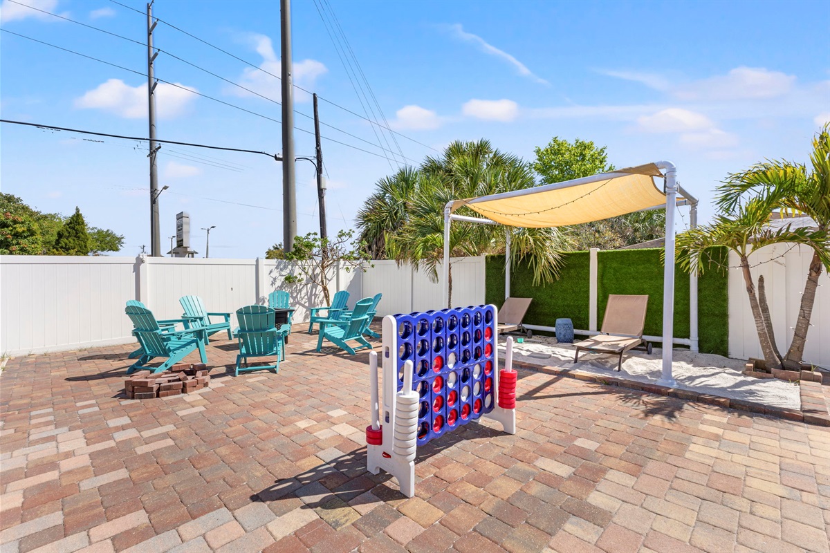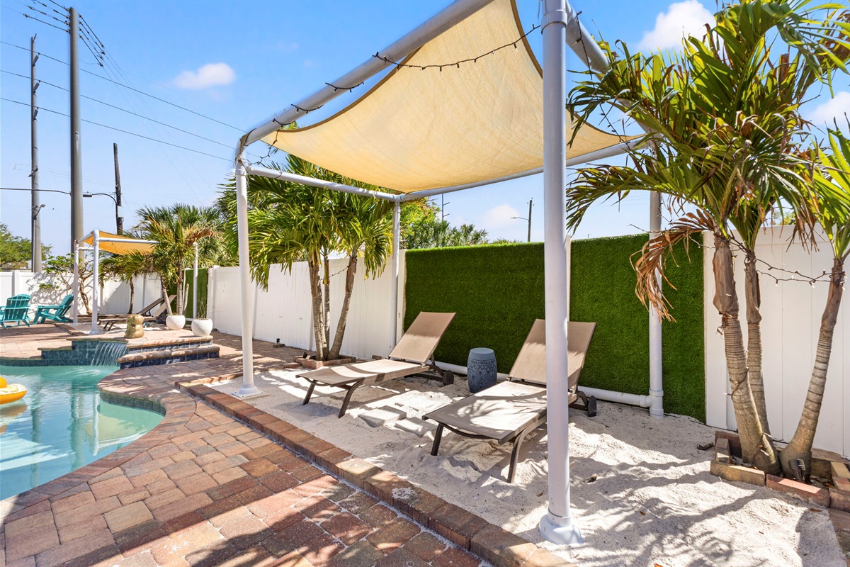 ☀ UNBELIEVABLE backyard w/ HOTTUB and HEATED Pool with waterfall feature + relaxing cabana in the sand + full outside equipped bar seats 8 with mini fridge & TV perfect for game days + pickleball court + fire pit + outdoor games including (large jenga, cornhole, ping pong, darts) + The grassy wall is a unique feature that provides a perfect backdrop for your vacation photos & so much more! You’ll never want to leave this outdoor oasis! Heat for pool is extra $50/day